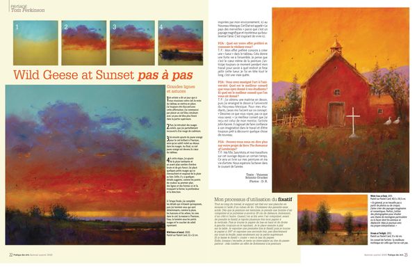 Perkinson shared his process for a painting entitled Wild Geese at Sunset, for the 'pas à pas' section - step by step.